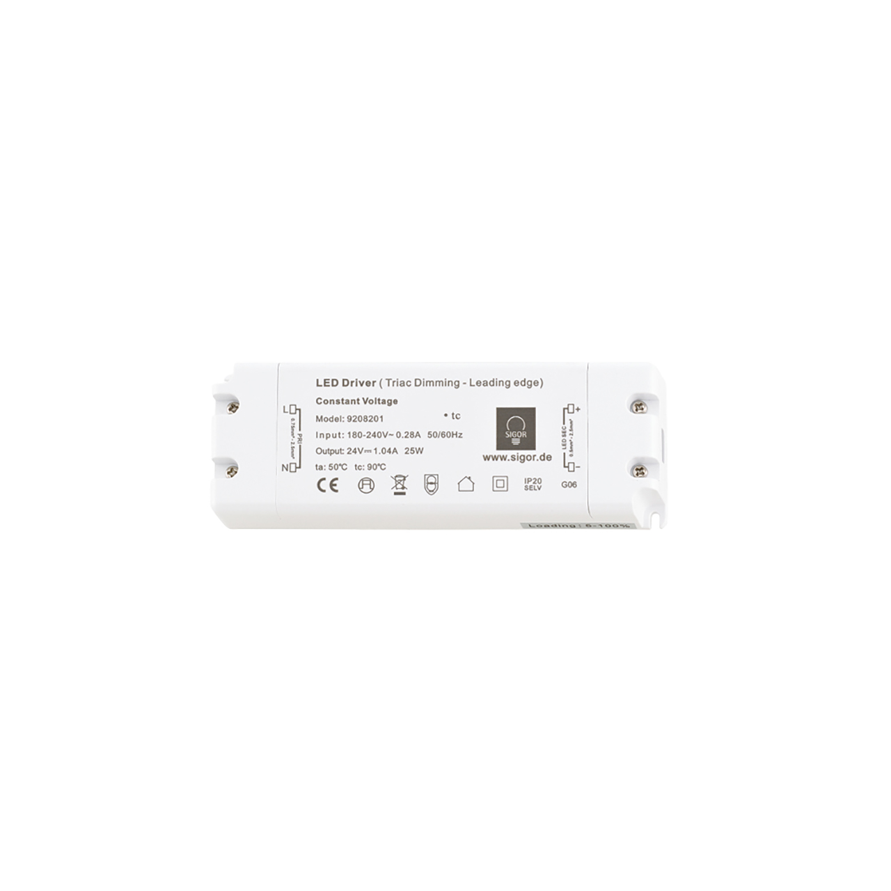 Unser 50W POWERLINE TRIAC FLAT in 24V findet seinen Einsatzbereich bei der Stromversorgung von LED-Bändern die über ein Phasenabschnitts-Dimmer gedimmt werden sollen. Es besitzt einen IP20 Schutz und ist daher nicht für die Anwendung im Außenbereich geeignet. Die Mindestlast des Treibers liegt bei 10% der Gesamtleistung. Des Weiteren liegt die Dimmrate bei 5% bis 100%. Unsere Treiber sind geschützt vor Kurzschlüssen, Überlast und Überspannung. Unser Treiber gilt als EMV-Störungsfest, das heißt, dass unser Treiber andere Geräte nicht durch ungewollte elektrische oder elektromagnetische Effekte stört oder durch andere Geräte gestört wird.