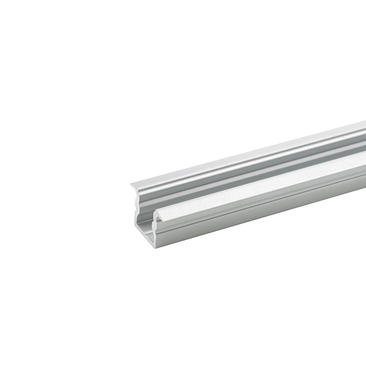 In Verbindung mit einer matten Abdeckung wird das Licht gestreut und das Lichtbild deutlich homogener. In das Profil können LED-Streifen bis zu einer maximalen Breite von 6mm eingebaut werden.
